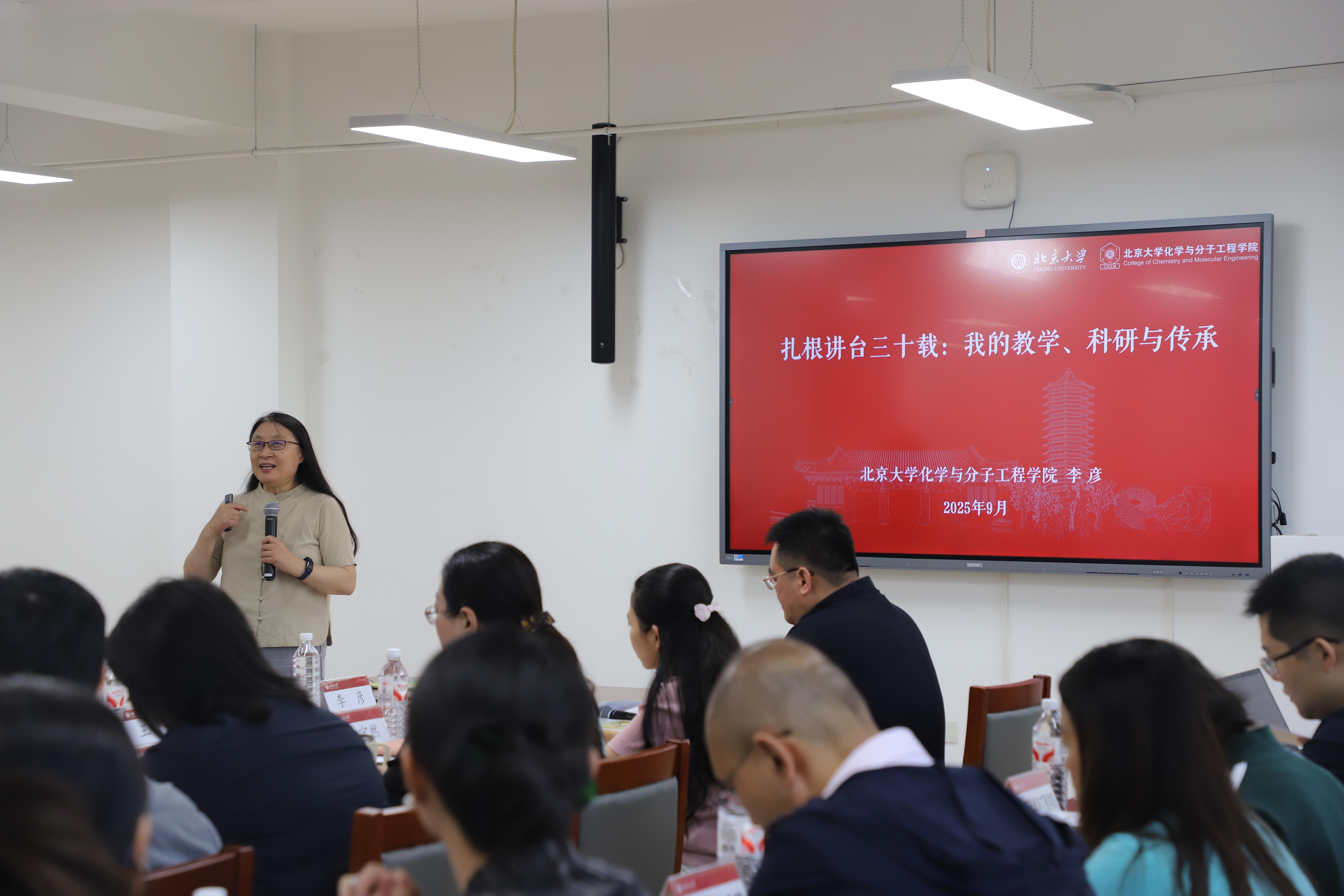 李彦以“扎根讲台30载:我的教学、科研与传承”为题,结合30余载执教生涯,深情回顾了自己教书育人的心路历程。她从2001年接手国家级精品课程《普通化学》讲起,生动讲述了在前辈大师傅鹰、张青莲、徐光宪等先生的精神感召下,如何将“课比天大”作为自己的信条,20余年如一日默默坚守在教学一线。谈及教学与科研的关系时,李彦以自己攻克碳纳米管国际性难题的经历为例,展示了教学相长的生动实践。她表示,正是在《普通化学》课堂上讲授的酶催化反应原理给了她科研灵感,进而提出基于结构匹配的催化剂设计方案,最终成功攻克了“制备结构一致的单壁碳纳米管”这一世纪难题。而这一重大科研突破,又成为她课堂教学中最鲜活的案例,真正实现了教学、科研与人才培养的有机融合与良性互动。