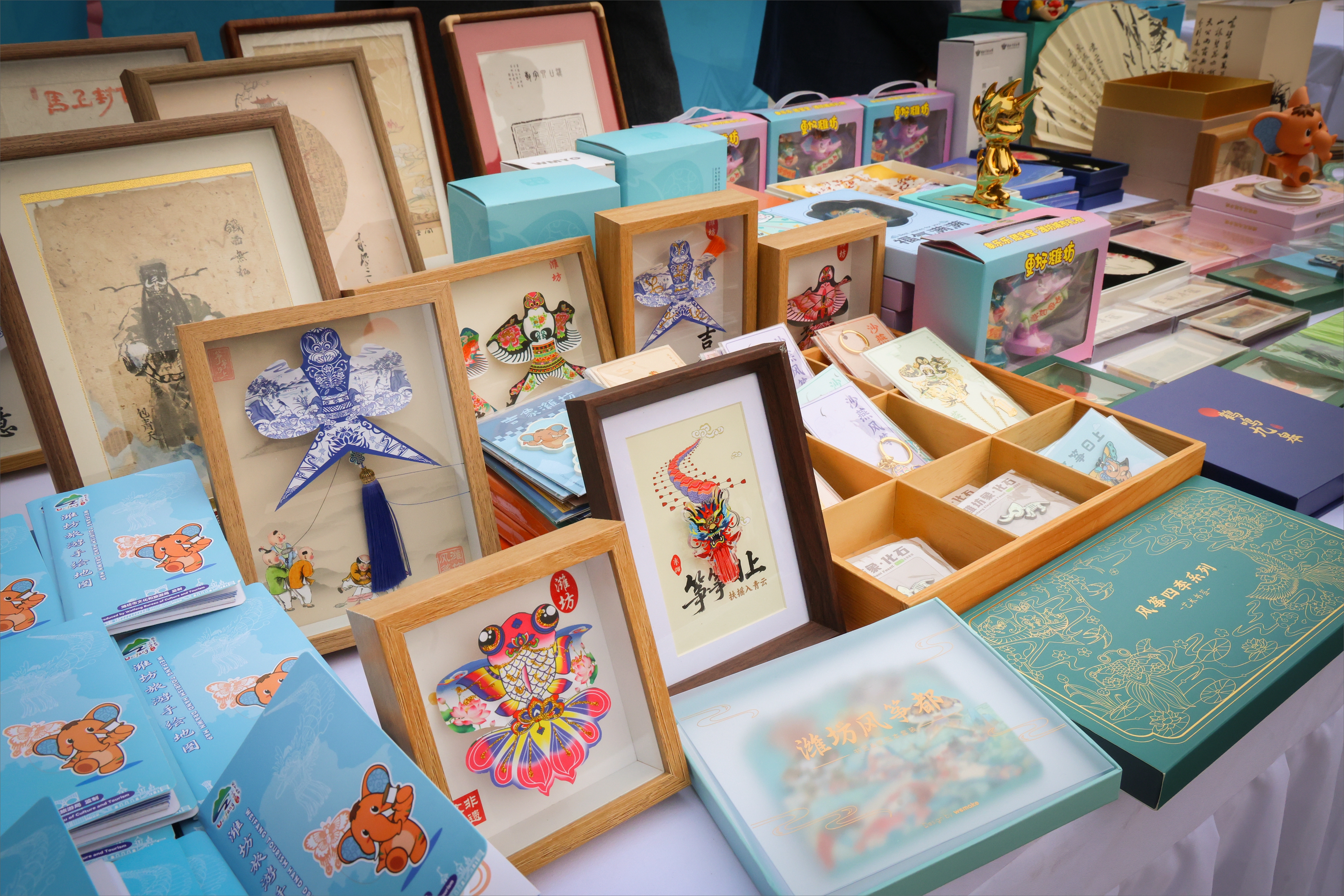 在非遗展区内,潍坊风筝、木版年画、红木嵌银、泥塑、剪纸、老猫花灯等传统手工艺精品琳琅满目,诸城烧烤、隆盛糕点等地方美食非遗香韵流转。灵动萌趣的“峱宝宝”“博物馆潍坊象”等文创产品令师生忍俊不禁。借助VR技术打造的“潍坊风筝博物馆云游览”体验区,让师生“沉浸”于风筝世界,感受非遗技艺在数字维度下的创新表达。活动还发布了“北京大学、潍坊联名风筝”,成为校地文化交融的生动见证。