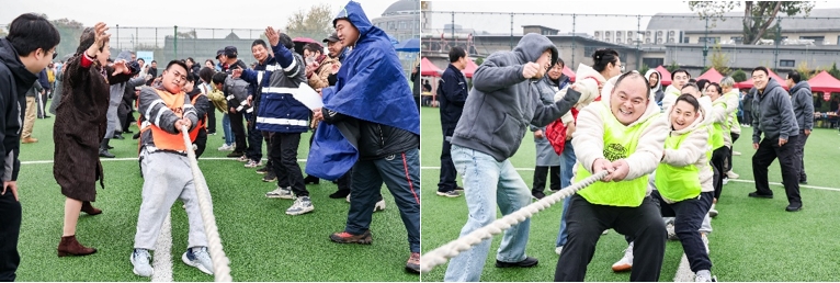 8时30分,趣味运动会正式开始前,作为“特别项目”的拔河比赛已率先点燃现场气氛。各支队伍依次登场,队员们紧握长绳、脚蹬地面,身体后倾形成整齐的“发力阵形”。随着裁判哨声响起,赛场瞬间沸腾——队员们喊着统一的口号咬牙坚持,场边观众的加油声、欢呼声此起彼伏,燕园的晨光里洒满拼搏的热血。最终,校园服务中心夺得拔河比赛冠军。