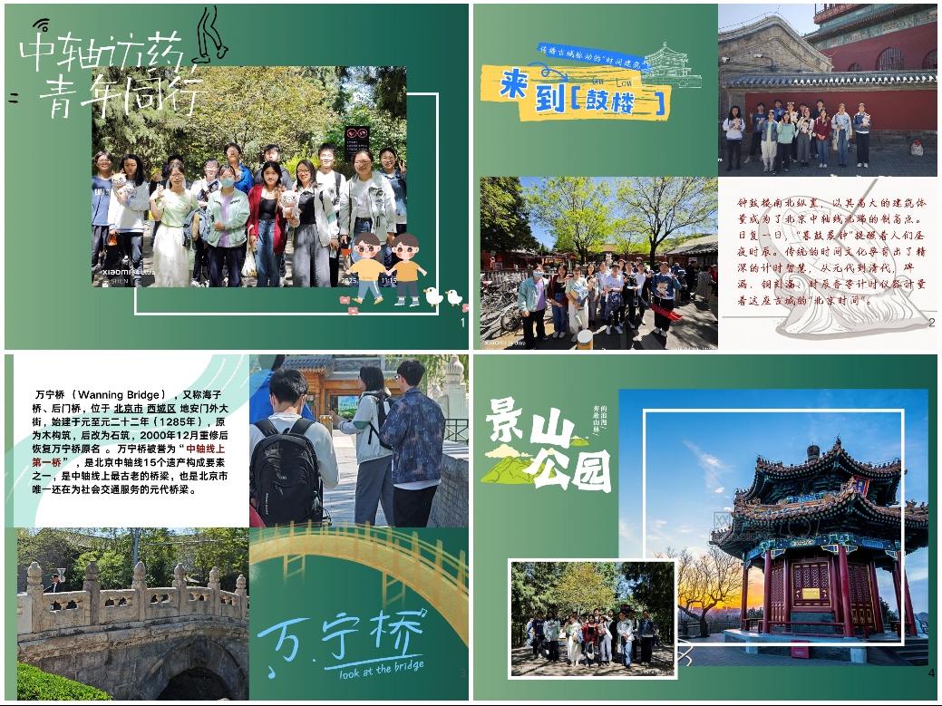 活动中,团支部成员以钟鼓楼为起点,沿中轴线南行探访至景山公园。在钟鼓楼下,同学们聆听古代计时与中医药文化间的关系;步行至什刹海畔,同学们踏过万宁桥,在万宁桥边学习中轴线往事;景山万春亭中,团支部成员分队行动,聊古今,望故宫。在实地调研的全过程中,团支部组织知识问答、植物打卡等互动环节,让文化探索充满趣味与挑战。