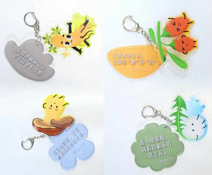 团支部成员创新设计药用植物钥匙扣,并结合植物自身生长特性寄语青年们,让枸杞、人参、肉苁蓉等常见药用植物“活”起来——枸杞在戈壁烈日下结出红果,寓意“逆境中沉淀生命的甜”;人参于山林幽暗中缓慢扎根,提醒青年“厚积薄发,静待破土时”……这些“会说话的本草”既能装点同学们的生活,又以“一草一世界”的哲学观鼓励药学青年奋进向前。