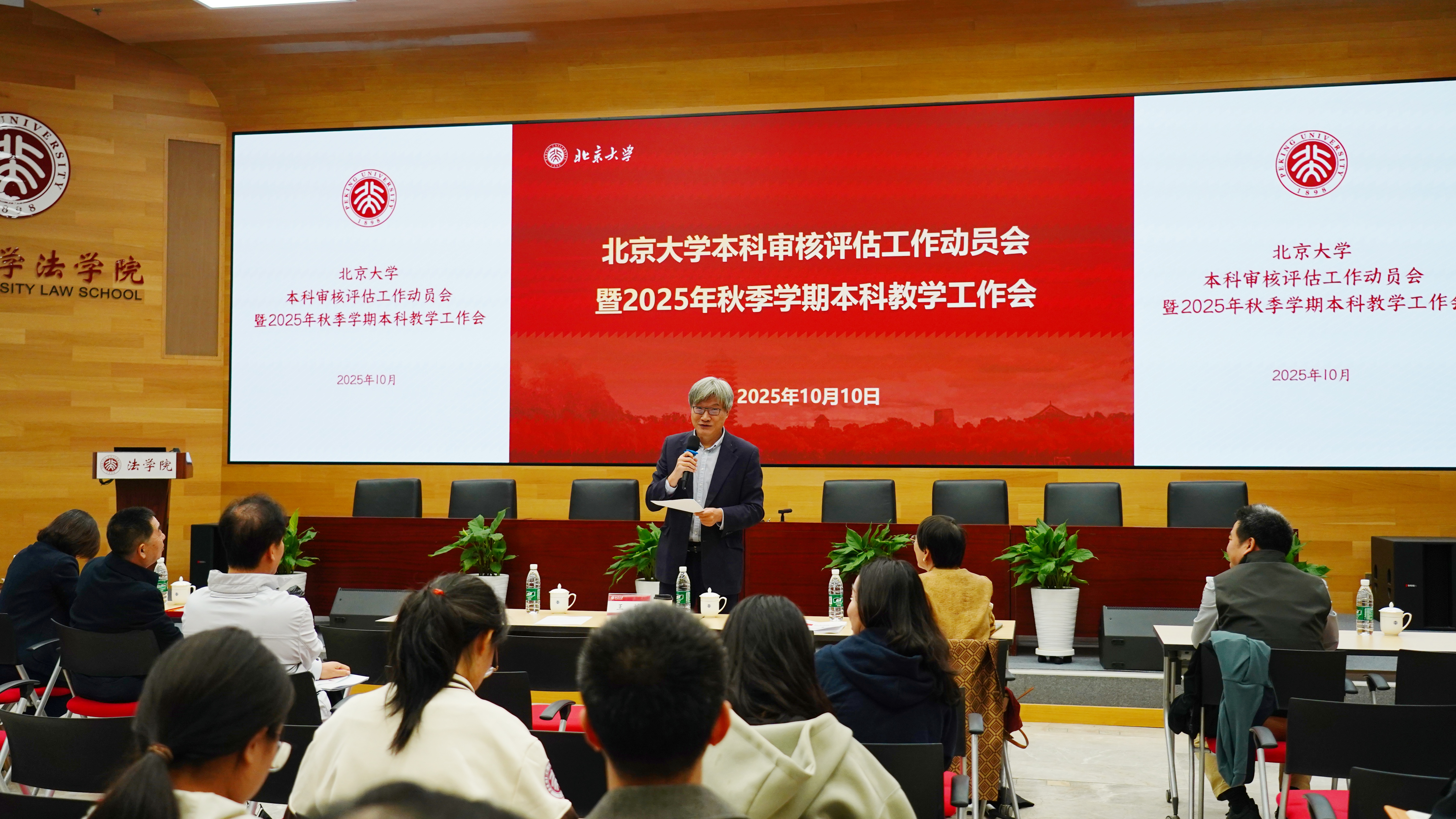 2025-10-16 08:3910月10日下午,北京大学召开本科审核评估工作动员会暨2025年秋季学期本科教学工作会。北京大学党委常委、副校长、教务长王博出席会议,各院系教学院长(教学主任)、教务人员、老教授本科教学调研组、医学部教育处代表和教务部人员参会。会议由教务部部长傅绥燕主持。