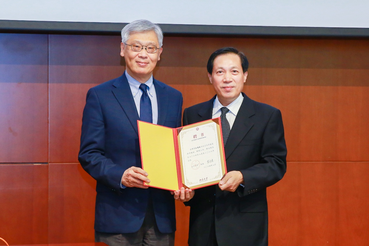 讲座正式开始前,中文系举行王德威任北京大学客座讲席教授聘任仪式。北京大学中文系主任杜晓勤致辞。他高度评价了王德威在中国现当代文学、比较文学、理论批评等领域的贡献,向王德威表示欢迎和感谢,并向其颁发北京大学客座讲席教授聘任证书。